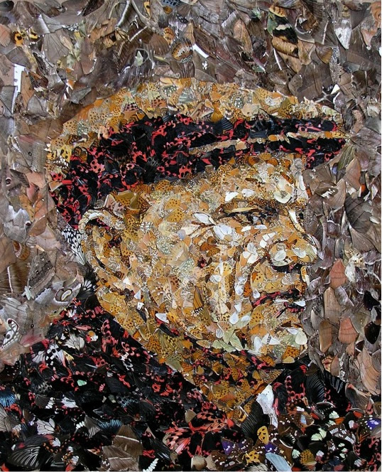 Artistul foloseste doar aripile fluturilor morti pe care ii gaseste si ale exemplarelor donate de colectionari.